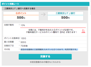上記のように、Gポイント公式サイトで換金手続きをすると、三菱東京UFJ銀行などの銀行口座に現金が振り込まれます。