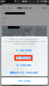 スマホで本人確認書類の画像を撮影して、画像をメールでパソコン送る際に、画像のサイズが選択できます。